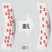 還元剤とは、水素(H)を出す薬液で、毛髪中にあるシスチン(SーS)という横のつながりをもった側鎖を切ってシステイン(S)というものに変える働きがあります(図1参照)