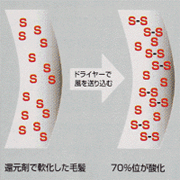 そこで、ウェーブヘアを真っすぐにする場合やパーマをかける場合には、毛髪を薬品で一時的に形を変化しやすい状態にした後、真っすぐに整えたり、変化させた上で元の状態に戻すという方法がとられています